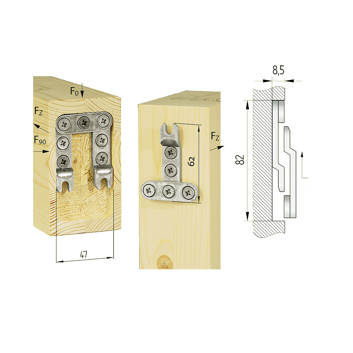 Each connector is manufactured in Austria from high strength, blue zinc coated steel and interlocks within a shallow routed recess. This creates a tight, self tensioning joint that accommodates natural timber movement without compromising stability. Because the hardware remains completely hidden inside the wood, the finished assembly maintains a seamless architectural appearance.