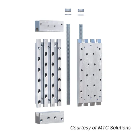 Insert and tighten the clamping jaws and threaded rods until seated.
