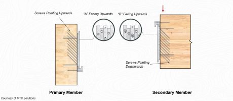 The MEGANT 550 x 100 x 40 is a high capacity, pre engineered beam hanger system designed for mass timber post and beam and girder connections. Manufactured from precision machined aluminum, it uses two connector plates and a pair of interlocking clamping jaws that automatically secure the connection once the beam is engaged.