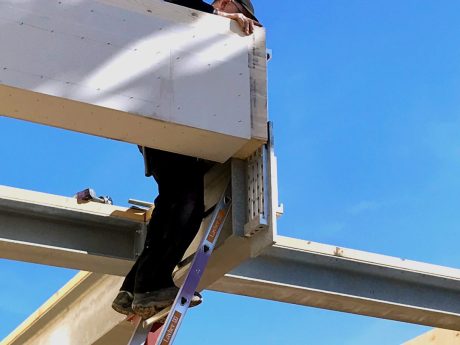 The MEGANT 550 x 150 x 50 is a pre engineered, ultra high capacity beam hanger system designed for large-scale mass timber post and beam and girder connections. Precision machined from aluminum, the system uses two connector plates and a heavy duty pair of interlocking clamping jaws that automatically lock the connection as soon as the beam is engaged.
