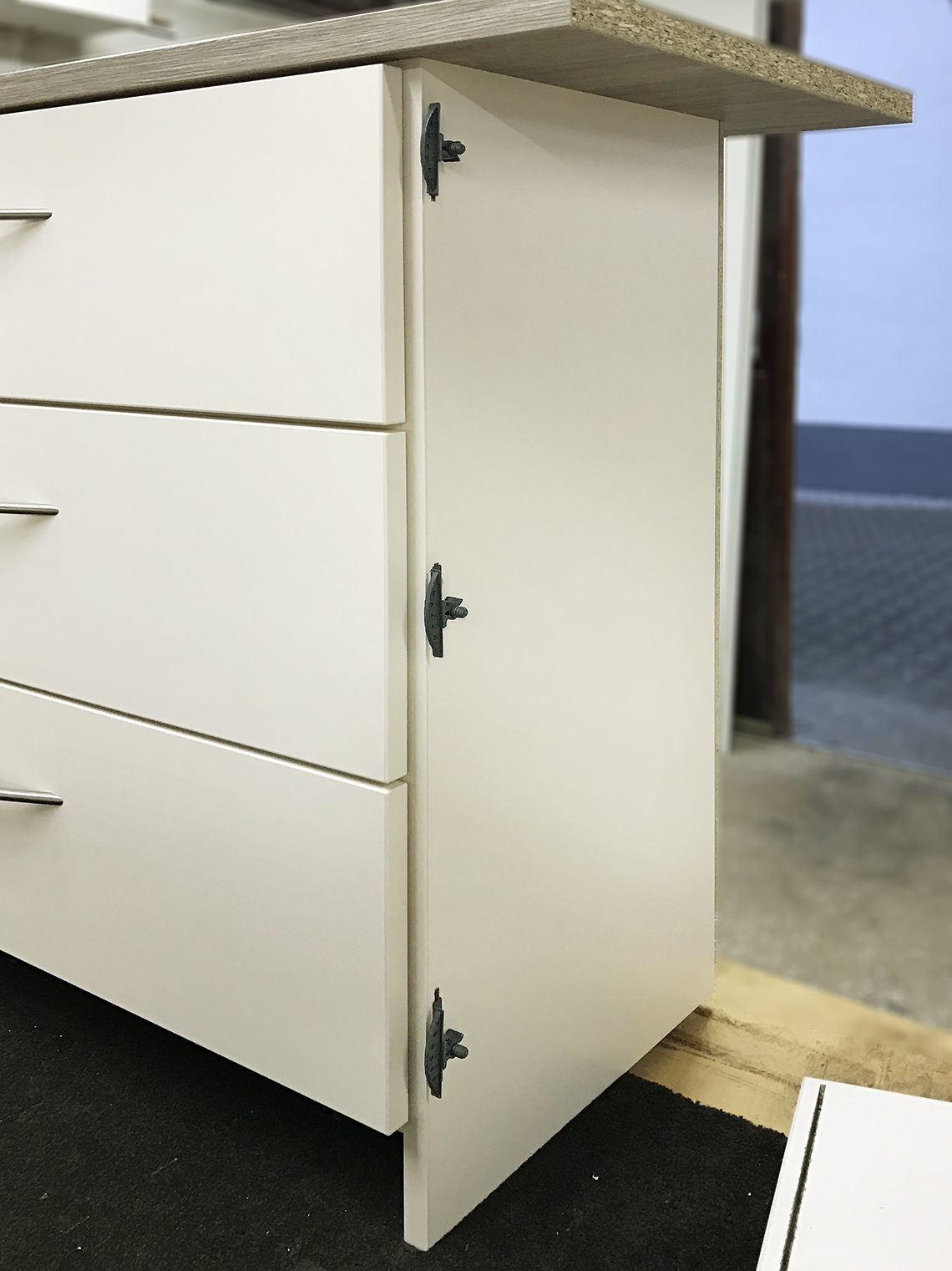 One of its unique advantages is adjustability: the ribbed pin can rotate 360° around its axis, making it possible to fine-tune positioning. The CLIPS can also function as a hinge, making it ideal for applications such as access panels, filler panels, false fronts, and louvered vents. This flexibility makes it a popular choice for ready-to-assemble (RTA) and knock-down (KD) furniture, as well as millwork and shopfitting projects.