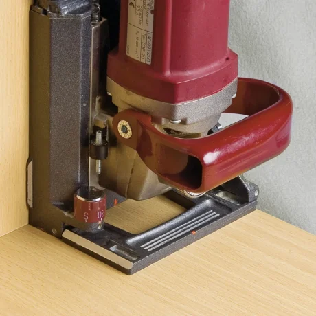Cut the slot using a standard #20 biscuit joiner. The groove dimensions should match the connector body (approx. 10 mm deep × 4 mm wide).