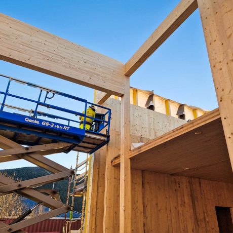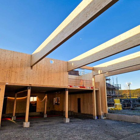 This project demonstrates how MEGANT connectors enable large-span, high-load timber construction, making them ideal for modern schools and other institutional buildings.