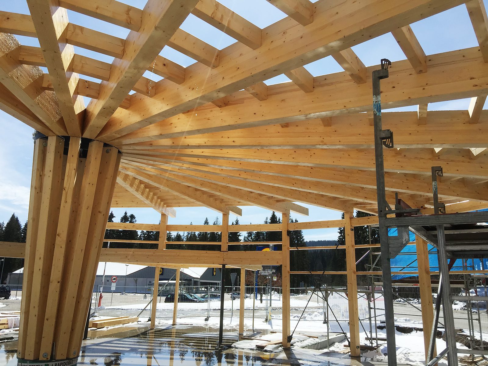 Architectural design: The project featured a circular beam arrangement, showcasing the flexibility of timber construction for creative geometries.