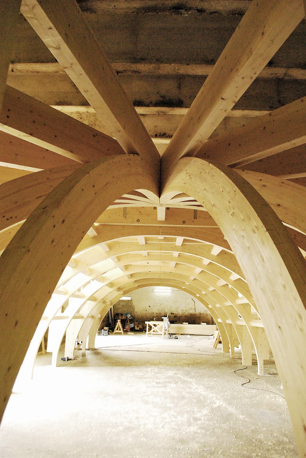 Connector technology: RICON and RICON S connectors secured the vaulted timber skeleton.