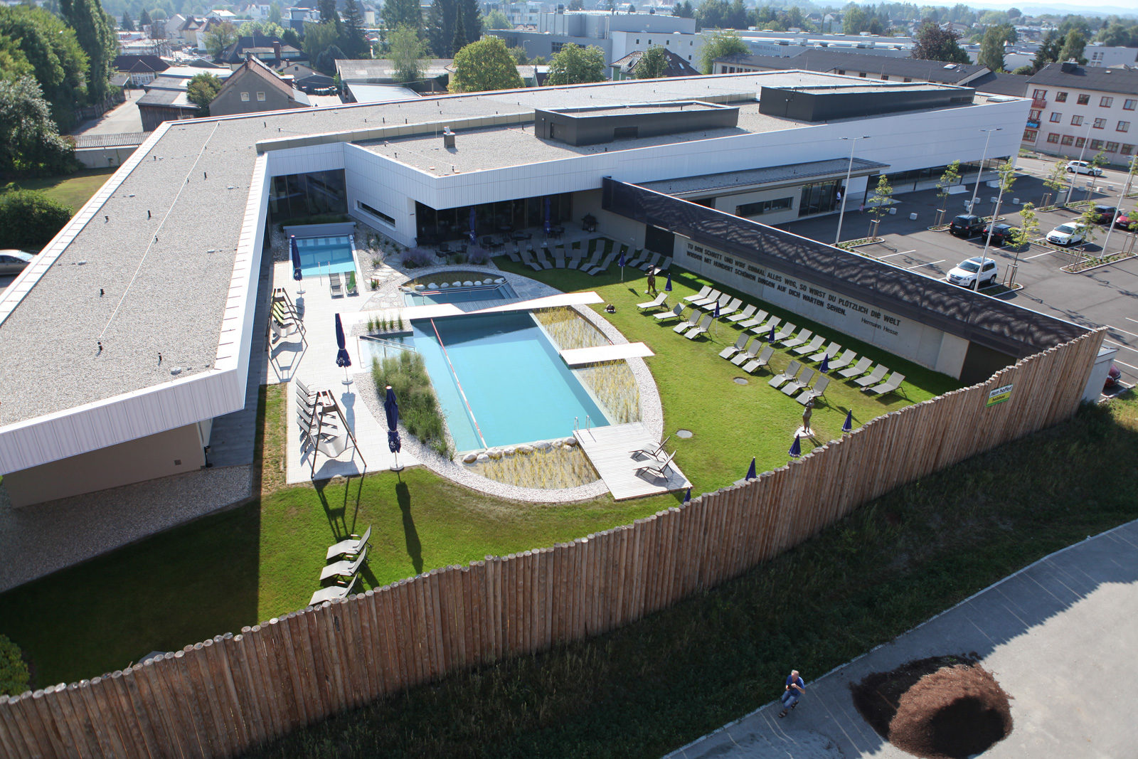 Completed in 2016, the indoor swimming pool in Ried im Innkreis is a major leisure facility designed to serve the local community and regional visitors. The complex covers a gross building volume of 27,000 m³, featuring multiple indoor and outdoor pools, wellness areas, and fitness amenities.