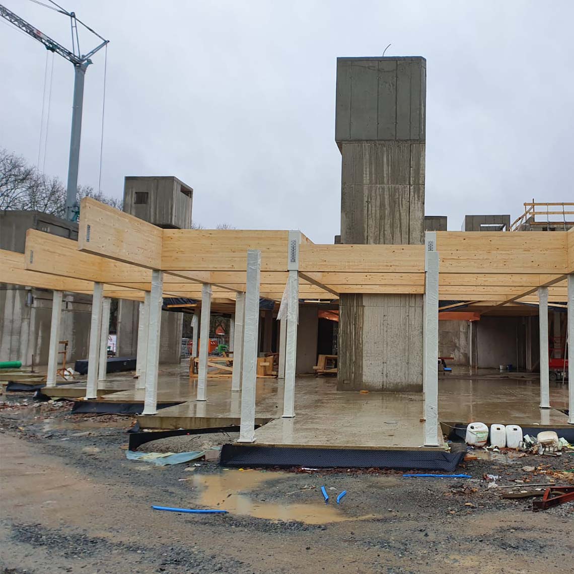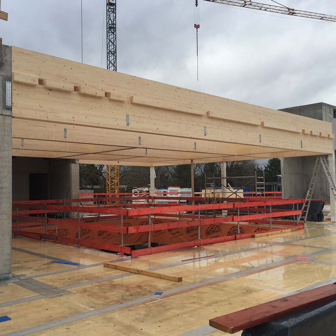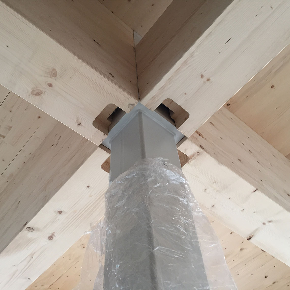 Connector systems: The timber structure relied on RICON S and MEGANT connectors, ensuring both secure load transfer and the ability to handle the large glulam beam spans.