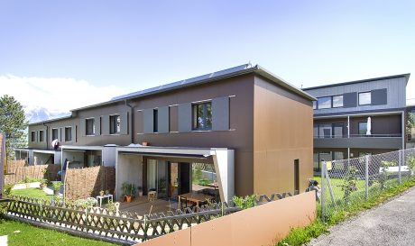 The complex consists of two multi-family buildings with five units each and four row houses, all meeting passive house standards. During planning, questions were raised about whether social housing in this construction method could be both affordable and marketable. The results were clear, all units were sold before construction was complete.