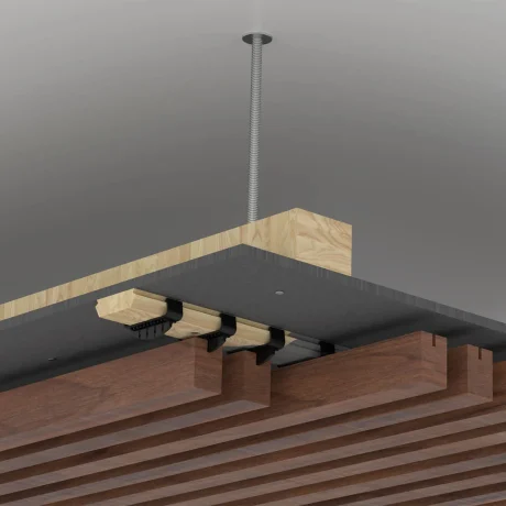 The DeKLICK Maxi Clamp Lamellar Black is an extra strong clip in clamp component with integrated lamellar bar, designed for use with DeKLICK Maxi Blocks to create a concealed and removable connection. It forms the interface between the decorative element and the fixed substructure.
