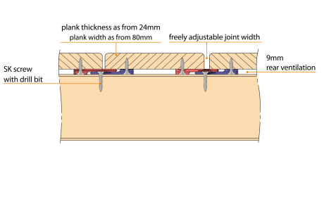 - Wood board exterior facade cladding (vertical application with rear ventilation)