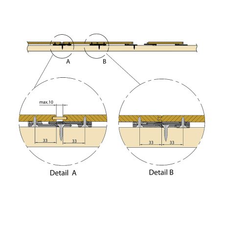- Coverage (500 mm joist spacing): Approx. 17 pairs/m² for 150 mm wide boards; approx. 25 pairs/m² for 100 mm wide boards