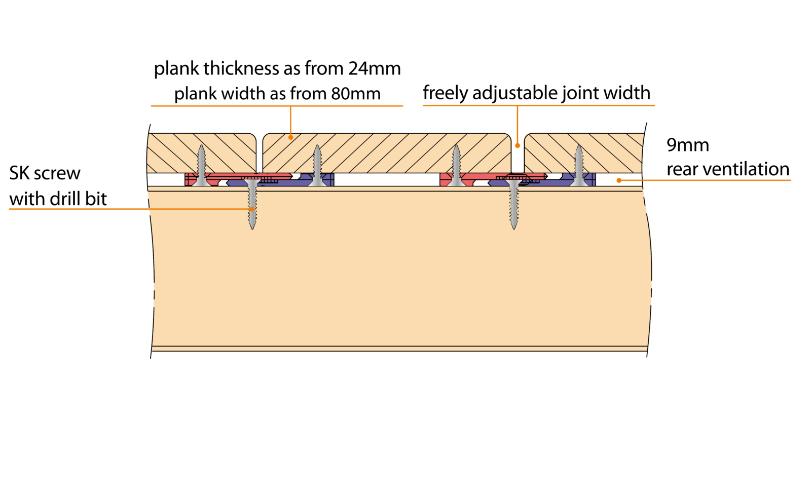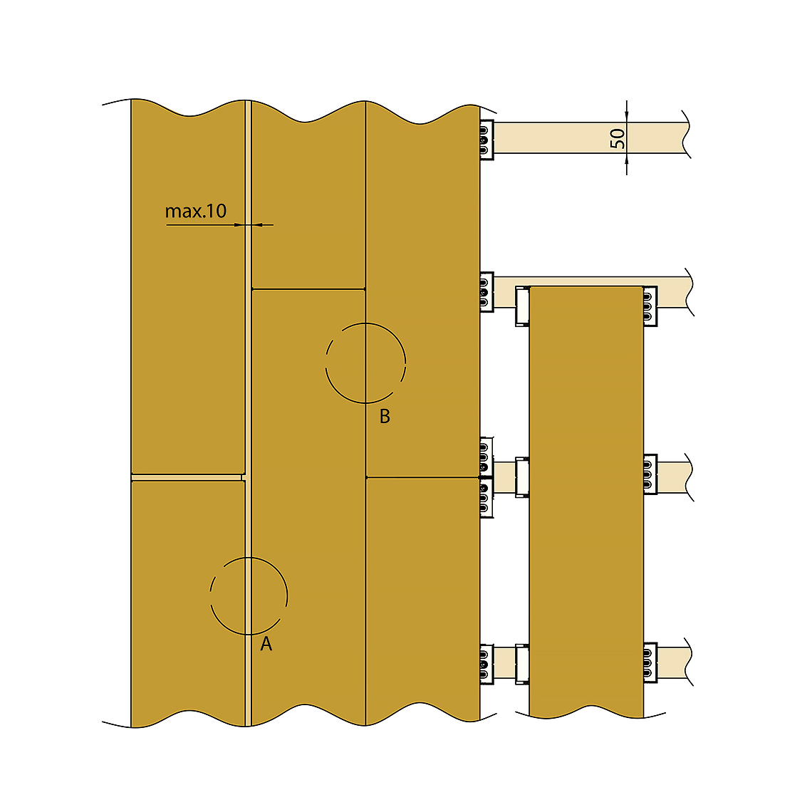 - Wood board exterior facade cladding (vertical application with rear ventilation)
