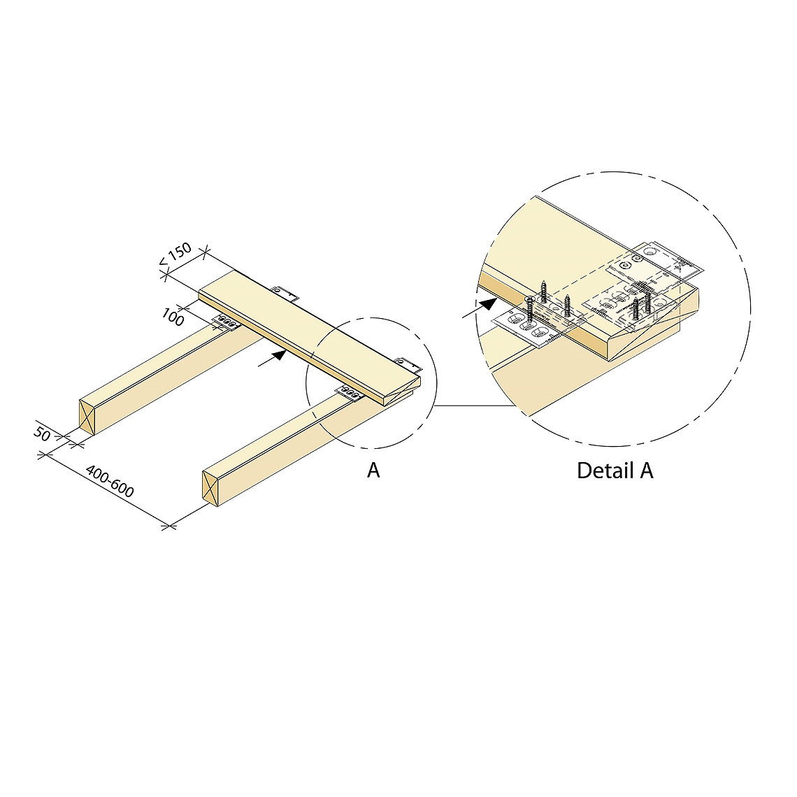 - Coverage (500 mm joist spacing): Approx. 17 pairs/m² for 150 mm wide boards; approx. 25 pairs/m² for 100 mm wide boards