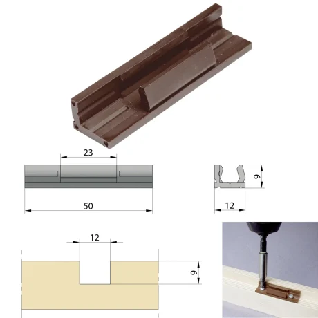 Installation: Cut groove 9 mm deep × 12 mm wide, or install surface-mounted; compatible with KLICK Dovetail Router Bit