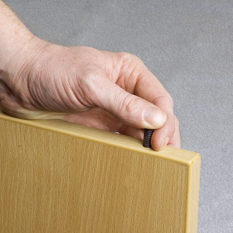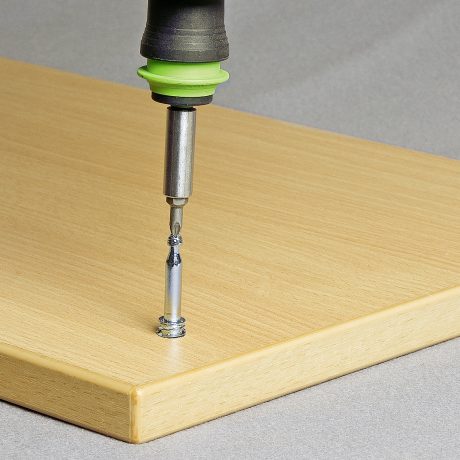 The QUICK-SET 5×7.5 mm is the most compact option in the QUICK-SET family, designed for lightweight case goods, drawer boxes, and small cabinetry. Despite its smaller size, the dowel offers strong pull-out values thanks to its threaded stud and plastic sleeve design.