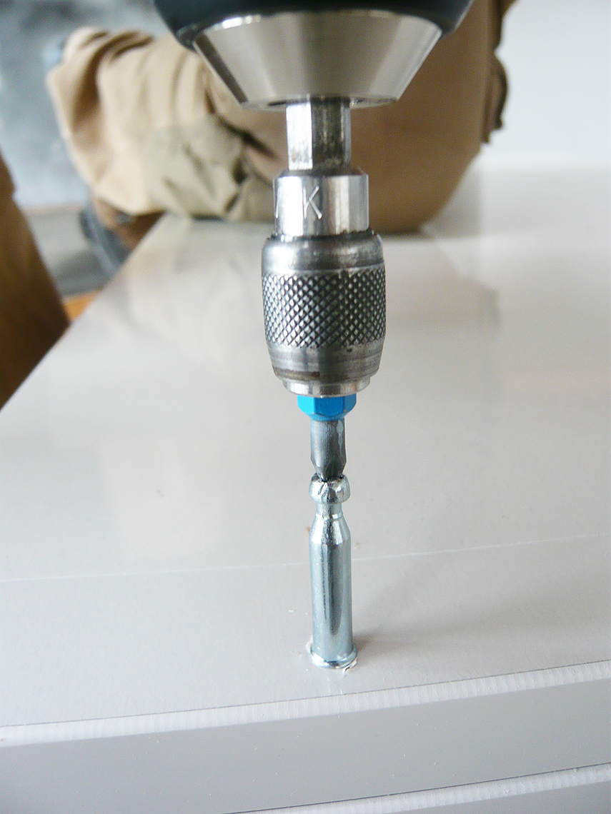 Drill a 5 mm hole for the threaded metal stud.