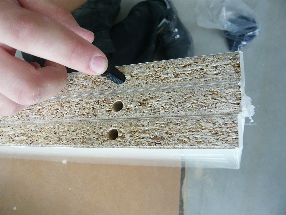 Drill an 8 mm hole for the plastic sleeve, to a depth of 31–32 mm.