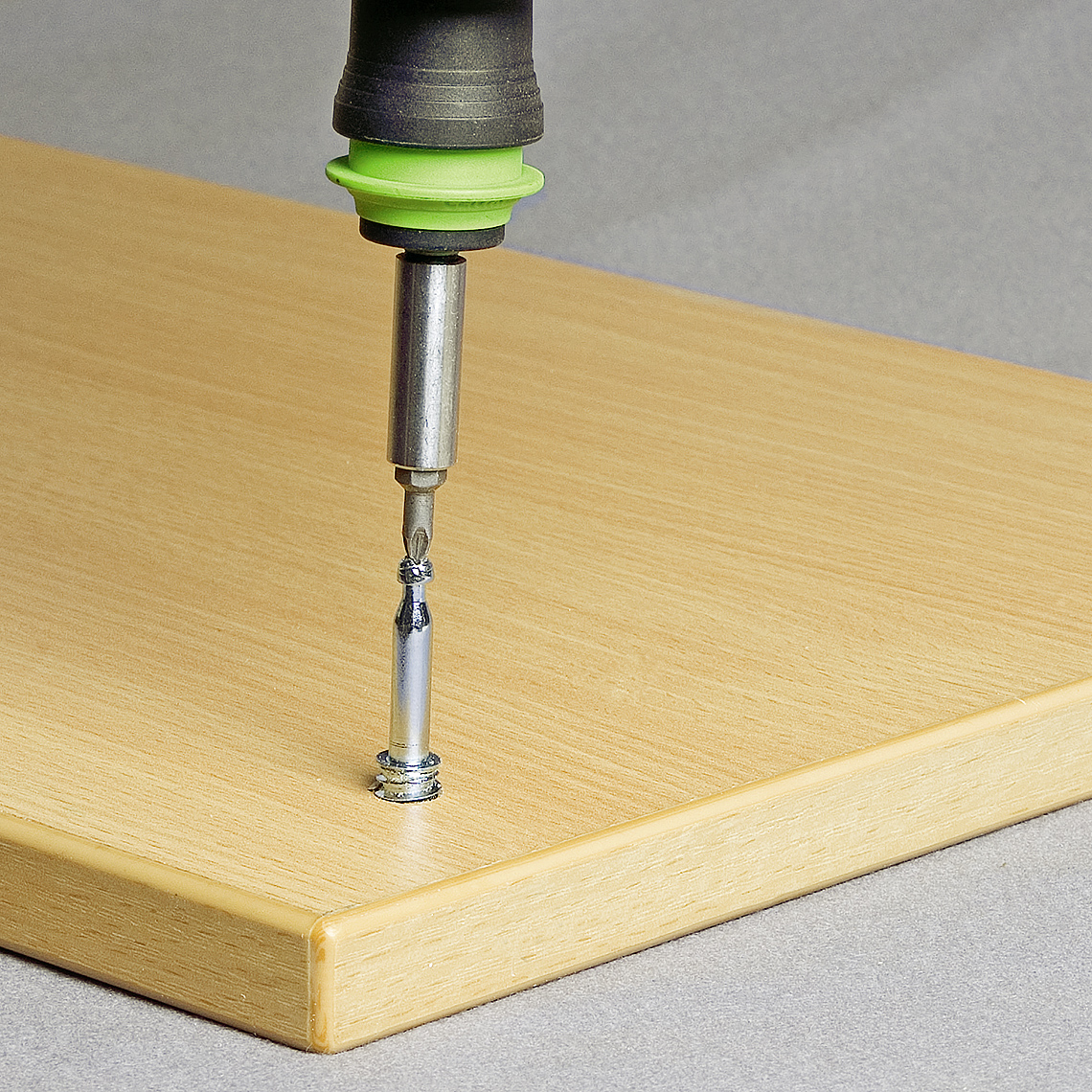 Like all QUICK-SET connectors, it is self-tightening, non-visible, and requires no glue, making it ideal for fast assembly in thinner materials where space is limited.