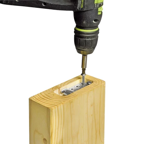 Position one DUO 100×15 connector plate into the mortise and use it as a template to predrill screw holes.