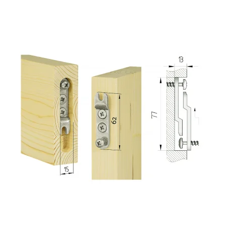 The DUO 62×15 is a durable connector in the DUO-System, designed for medium-duty frame connections requiring both strength and precision. Its slim but longer profile makes it especially suited for applications where stronger anchoring is needed without adding bulk.