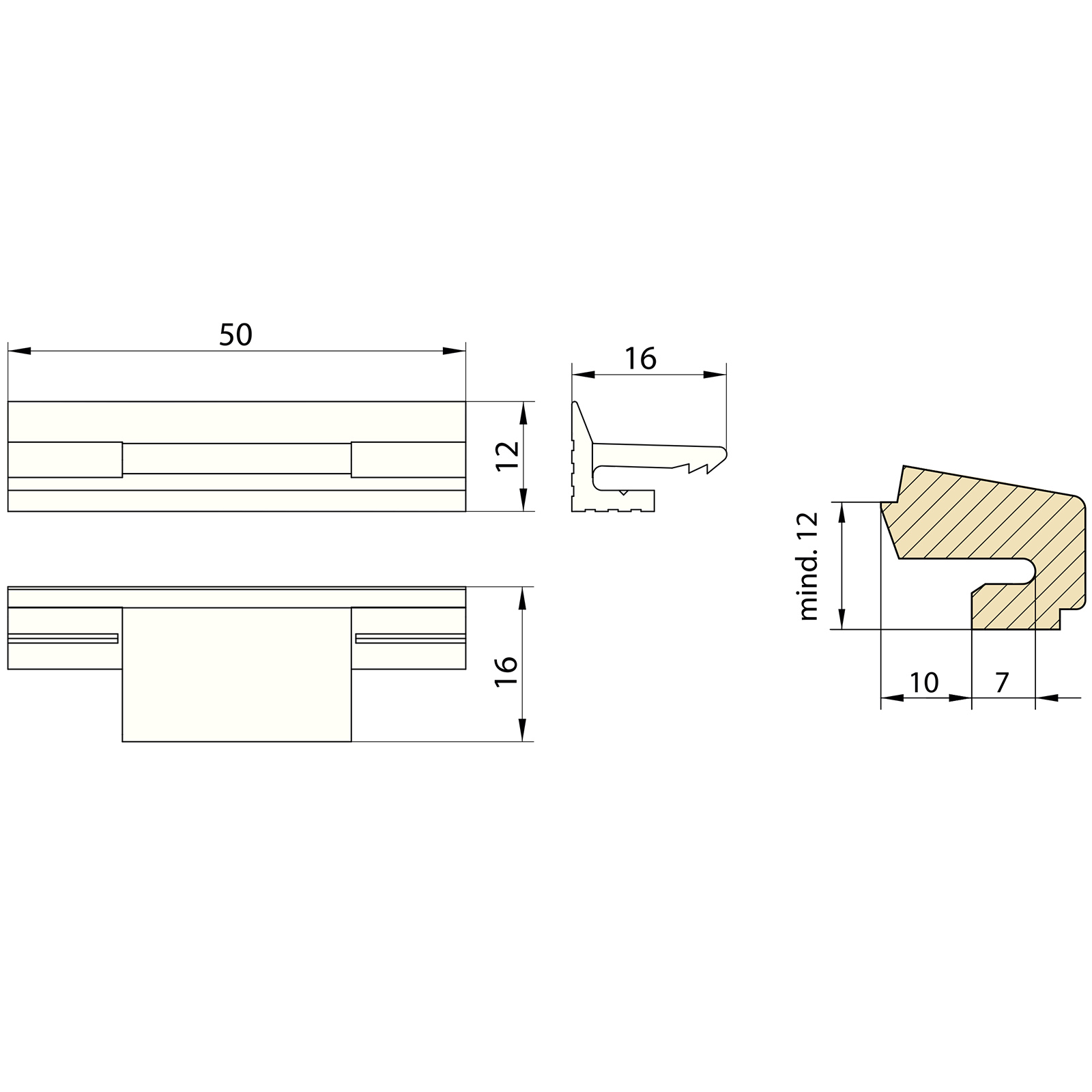 The clip base is fastened to the window frame by nail or screw, then the glazing bead simply presses onto the clip and locks into place. To remove the bead for glass replacement or service, lever it off the clip — the bead, glass, and frame remain undamaged. The H16 is the standard mid-size option of three FIXclip sizes (H12, H16, H20), with a 16 mm clip height for typical glazing bead profiles.