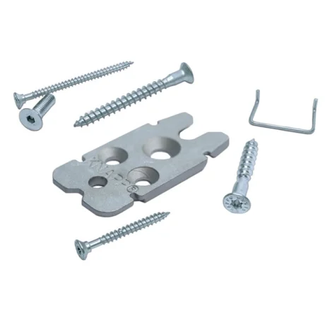 Mod-eez Double Clips are used in combination with 2 Shoulder Screws and used for wider dimension board material. They are anti-rotating and can be attached in all wood materials, including metal. Mod-eez clips are made for material as little as 5/8″ in thickness and are ideal for table aprons, stools, bookcases, and any material greater than 3″ in width. Spring steel clips make the joint strong, yet flexible, while the collar on the shoulder screw adds tremendous resistance to torsional pull-out. Simply slide the shoulder screw head down the ramp of the clips and all fasteners disappear.