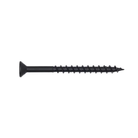 #8 Flat Head Wood Screw with Phillips drive, made from black phosphate-coated steel for strength and corrosion resistance. The flat head countersinks flush with the work surface for a clean, concealed finish.