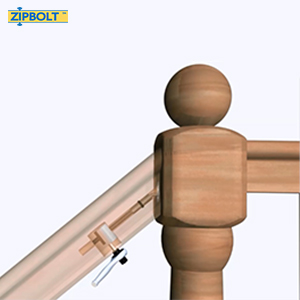 Ideal for upper angled handrail joints; for bottom rail connections, use Zipbolt 11.550 Angled Railbolt.